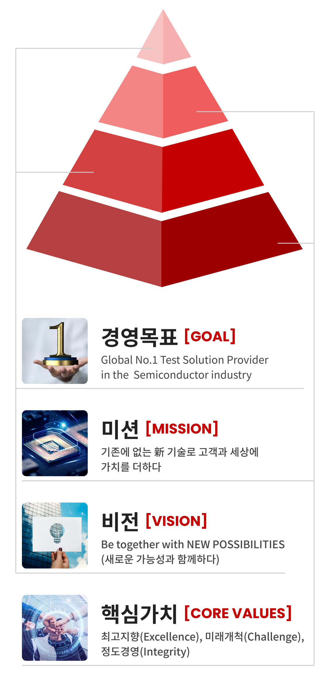 당사는 "기존에 없는 新 기술로 고객과 세상에 가치를 더하다"라는 경영이념 아래, 생산성 및 기술 향상을 위한 새로운 가능성과 기회를 항상 모색하며 이를 적극적으로 도입하고 혁신하고자 노력하고 있습니다. 끊임없는 도전 정신과 최고를 지향하는 전문가로서, 고객 분들의 비즈니스 파트너로 함께 성장하겠습니다.